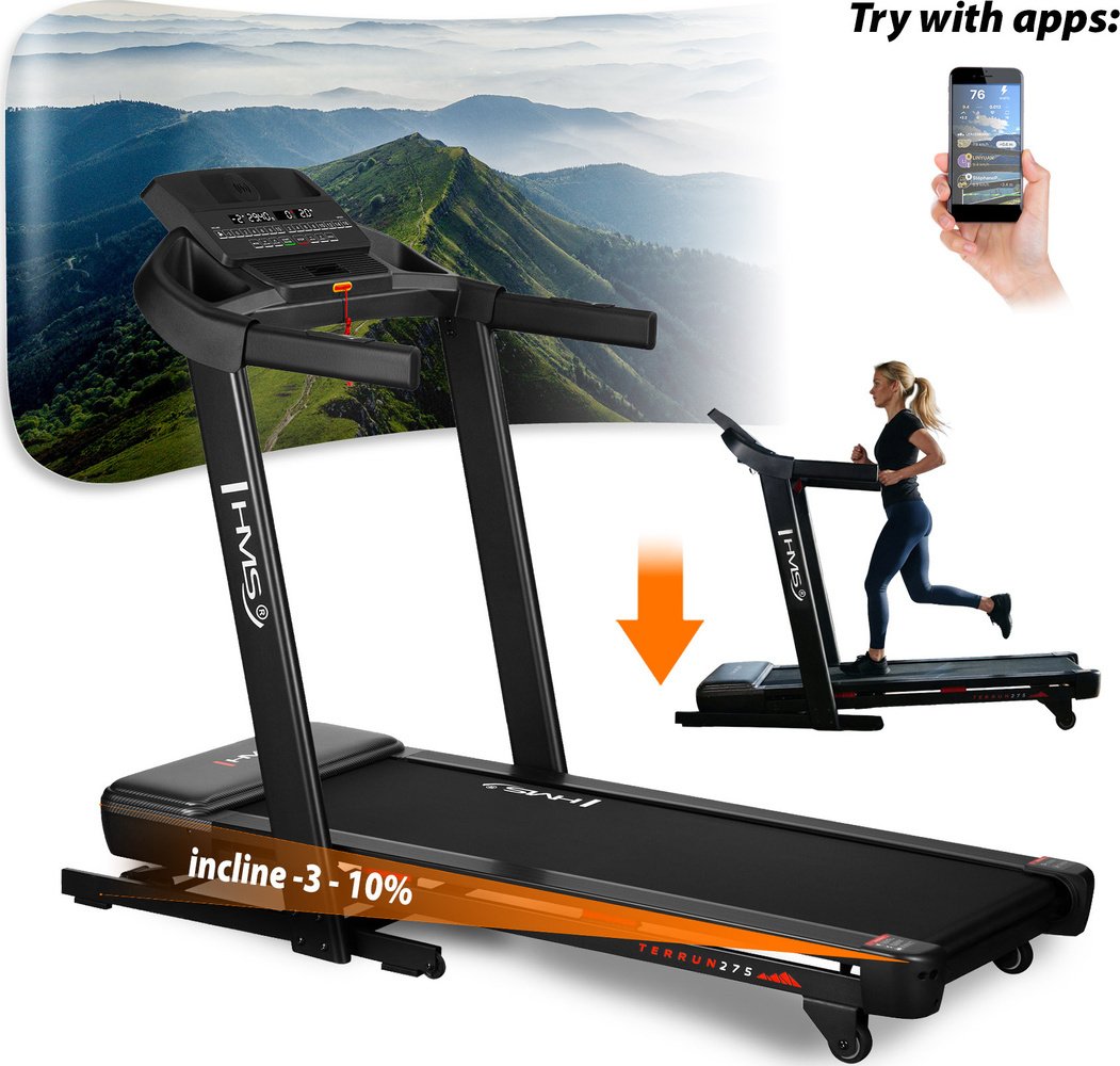Bieżnia HMS TERRUN275 BIEŻNIA DOMOWA Z DWUKIERUNKOWĄ REGULACJĄ KĄTA NACHYLENIA HMS