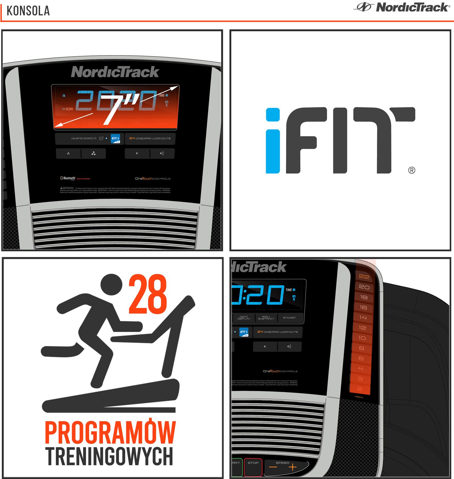 PROGRAMY TRENINGOWE: 28 programów bez wykupionego członkostwa iFit. Z członkostwem iFit otrzymujemy dostęp do 2000 video treningów z trenerami personalnymi oraz automatyczną kontrolą/regulacją nachylenia w zależności od wybranej trasy. Do bieżni dołączone jest członkostwo iFit dla jednego użytkownika na rok.