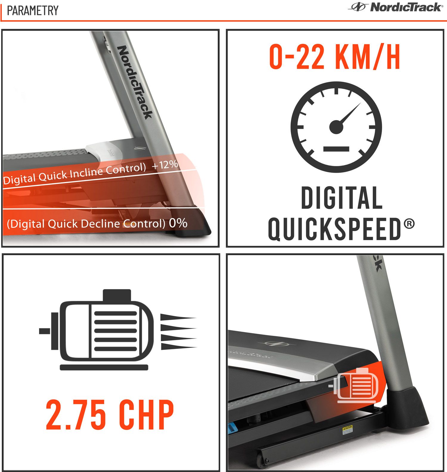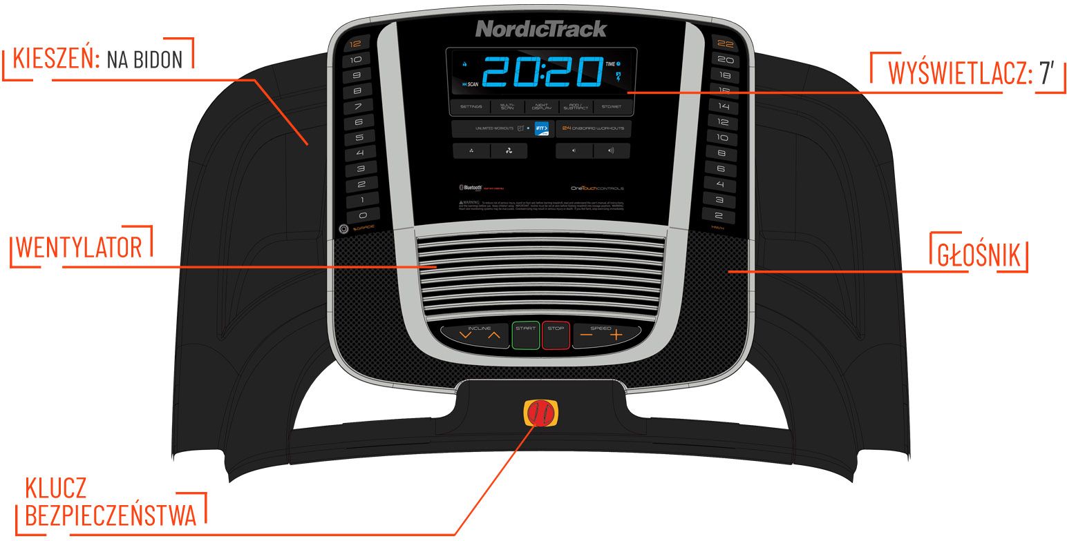 SYSTEM AMORTYZACJI: Zaawansowany system amortyzacji bieżni NordicTrack zapewnia amortyzację pasa bieżni dla komfortu stawów.