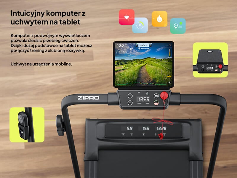 Otwórz się na więcej – trening z aplikacjami FitShow i Kinomap Bieżnia ZIPRO Newlite to nie tylko solidny sprzęt do codziennego treningu – to również wrota do cyfrowego świata aktywności fizycznej. Dzięki kompatybilności z aplikacjami, każdy bieg może stać się znacznie bardziej angażujący, zróżnicowany i motywujący. Aplikacja FitShow pozwala monitorować postępy, ustawiać cele treningowe, korzystać z map i wirtualnych tras oraz dzielić się wynikami. Jeśli klasyczny trening Cię nudzi, Kinomap zamieni Twój bieg w podróż dookoła globu, dzięki setkom realistycznych tras.