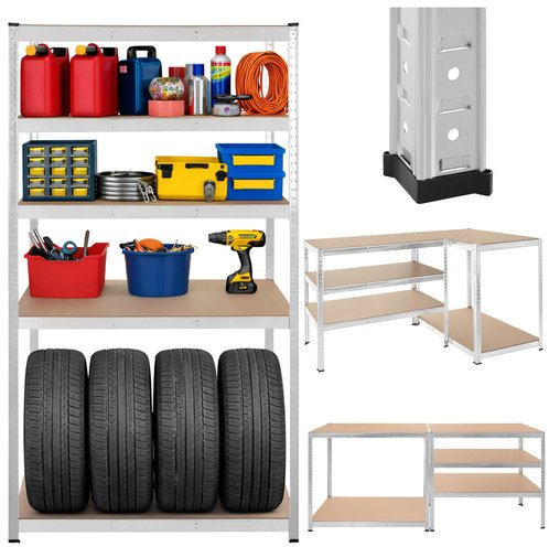 Regał wyposażony jest w pięć półek z wzmocnionymi wspornikami, które zapewniają stabilność oraz bezpieczeństwo przechowywania. Każda półka ma nośność do 200 kg, co pozwala na bezpieczne składowanie różnorodnych przedmiotów. Dodatkowo, regulowana wysokość półek co 30 mm umożliwia dostosowanie przestrzeni do indywidualnych potrzeb.