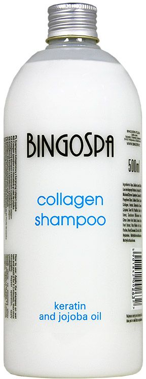 Szampon kolagenowy BingoSpa z keratyną i olejkiem jojoba intensywnie nawilża zniszczone i osłabione włosy, chroni włosy przed szkodliwym wpływem czynników środowiskowych. Działają osłaniająco i kondycjonująco na strukturę włosów.
