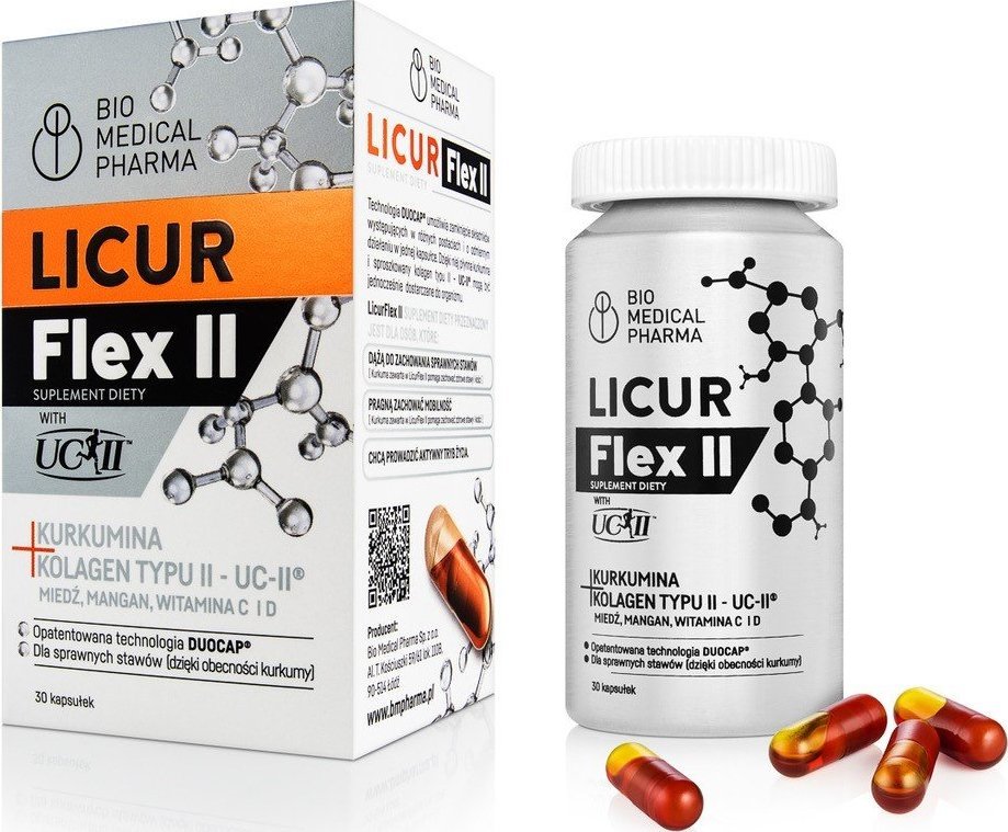 Bio Medical Pharma Bio Medical Pharma LICUR Flex II kurkumina kolagen UC-II 30 kapsułek - WYSYŁAMY W 24H!