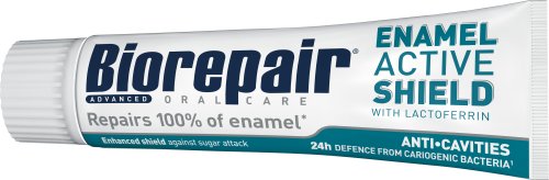 Innowacyjna formuła BioRepair® PRO Active Shield zapobiega powstawaniu i rozwojowi płytki nazębnej dzięki skojarzonemu działaniu ksylitolu i jonów cynku (PCA). Ksylitol zmniejsza stężenie bakterii Streptococcus Mutans, które są odpowiedzialne za powstawanie próchnicy. PCA zakłóca metabolizm bakterii w jamie ustnej, a tym samym działa przeciwbakteryjnie. MicroREPAIR®, biomimetyczna cząsteczka hydroksyapatytu, wiąże się ze szkliwem i chroni je przed erozyjnym działaniem kwasów. Laktoferyna wzmacnia ochronę błon śluzowych, które stanowią naturalną obronę jamy ustnej.