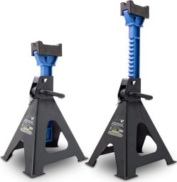 Podpory do warsztatu o udźwigu 6T/SZT wpasują się do każdego warsztatu samochodowego bądź warsztatu. Kobyłki posiadają regulację wysokości w 13 stopniach w zakresie od 39 do około 60 cm. Gumowe nakładki na uchwyty zabezpieczają przed uszkodzeniem ładunku. Duże podnóżki zapewniają im stabilność na powierzchniach twardych.