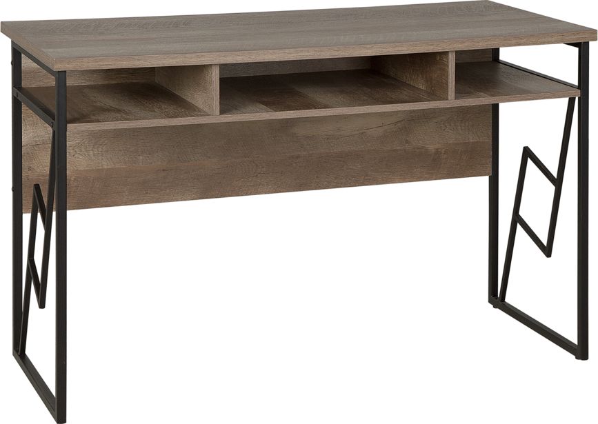 Biurko, które sprawdzi się w każdym gabinecie, czy pokoju nastolatka. Oprócz funkcjonalności zachwyca swoim wzornictwem. Połączenie wysokiej jakości blatu i półek w kolorze ciemnego drewna wraz z solidną ramą w kolorze czarnym wygląda atrakcyjnie oraz pasuje do wielu stylów wyposażenia wnętrz.