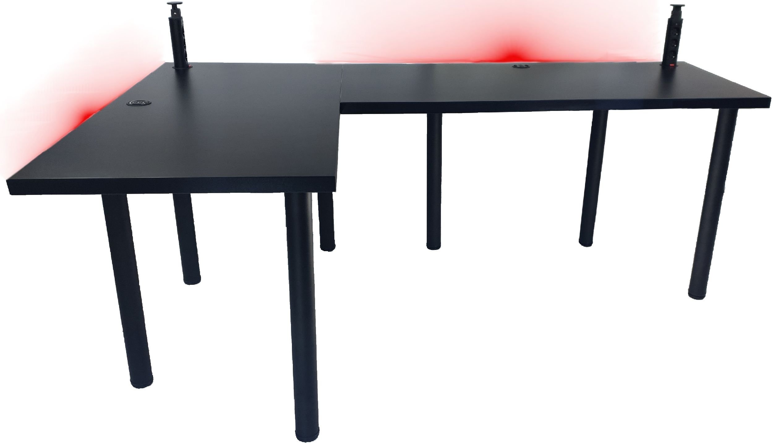 przez co biurka są najwyższej jakości. Posiada gruby wytrzymały blat, regulowane nogi, taśmę led, hub z przepustem, gniazdo wpuszczane