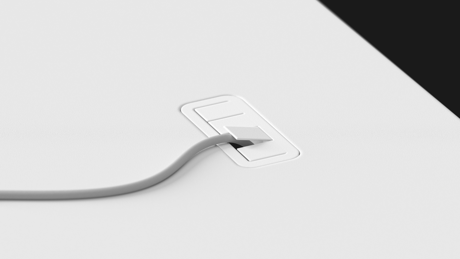Starannie wkomponowana w blat przelotka na kable ułatwia organizację przestrzeni roboczej i zarządzanie kablami. Przepust jest idealnie płaski i gumowany, dzięki czemu nie wpływa na ustawność biurka. To subtelne rozwiązanie, które robi ogromną różnicę – minimalna forma, maksymalna funkcjonalność.