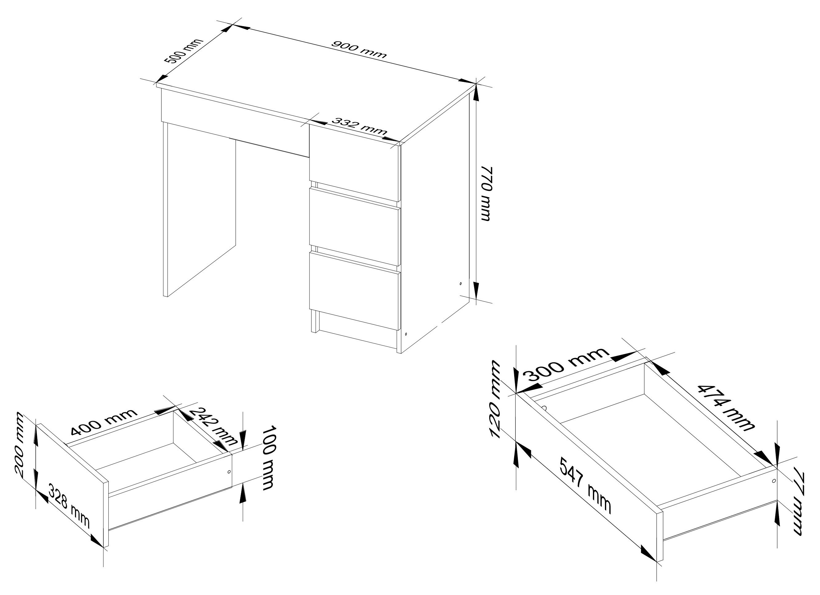 Biurko komputerowe A-7 to niewielkich rozmiarów mebel, który znajdzie zastosowanie w małym pomieszczeniu - biurowym lub mieszkalnym. Sprawdzi się na przykład w domowym gabinecie lub pokoju dziecięcym/młodzieżowym. Prezentowany produkt występuje w całości w kolorze grafit szary. Składa się z trzech szuflad przeznaczonych do dowolnego zagospodarowania. Prosty w swej formie, jednak niezwykle funkcjonalny mebel z pewnością zostanie doceniony przez osoby, które pragną stworzyć kącik do pracy lub nauki, jednak nie mają do dyspozycji wiele miejsca.