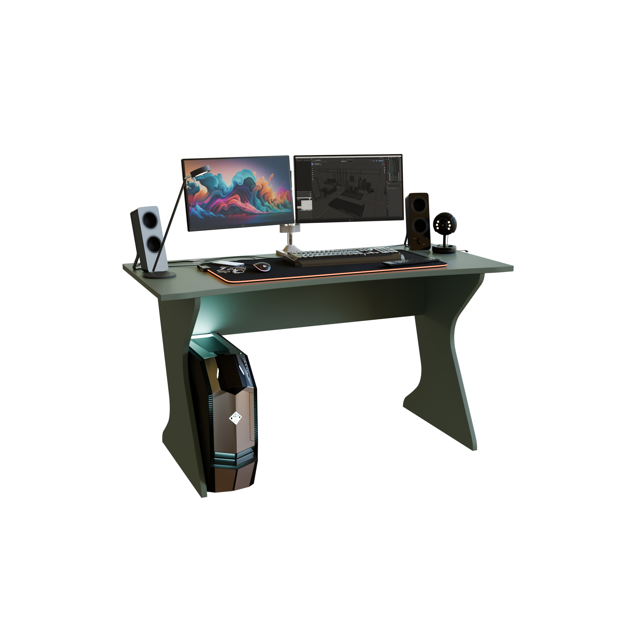 Biurko gamingowe BASESTAR202 w szałwiowym kolorze posiada szeroki na 140 cm blat, który zapewni wygodne miejsce na efektywne zorganizowanie biura lub rekreację z grą w tle.