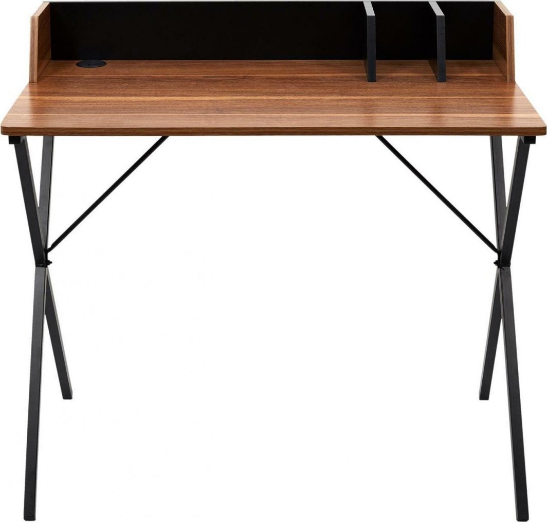 Deska zapewnia większe bezpieczeństwo i spokój podczas pracy.Nie tylko funkcjonalność, ale również wygląd biurka przyciąga uwagę. Prosta konstrukcja, blat z laminowanej płyty MDF w kolorze drewna orzecha oraz metalowa, stylowa podstawa nadają biurku niepowtarzalnego uroku. Dzięki temu biurko doskonale odnajdzie się w różnych pomieszczeniach - biurze, gabinecie, a nawet w pokoju młodzieżowym.