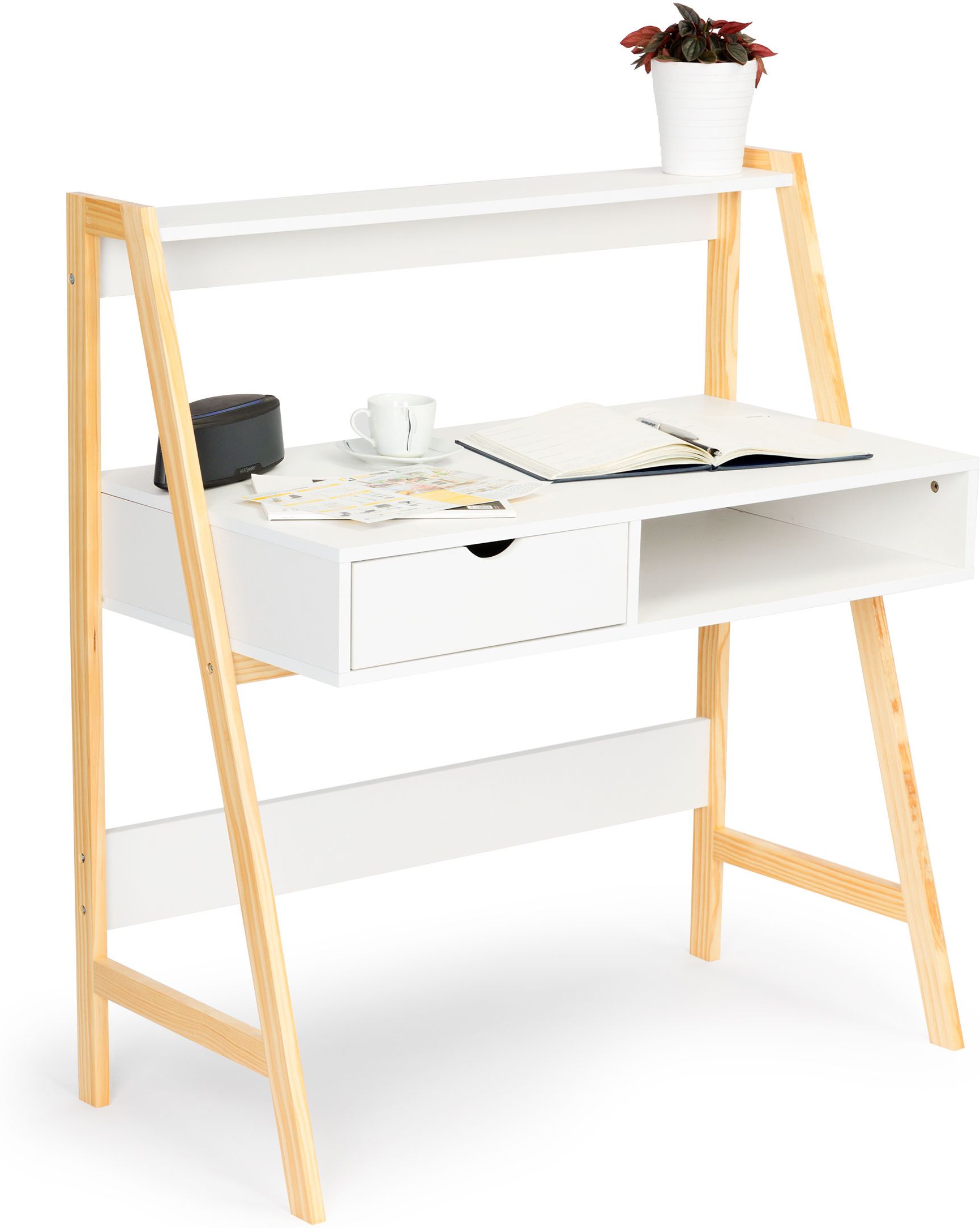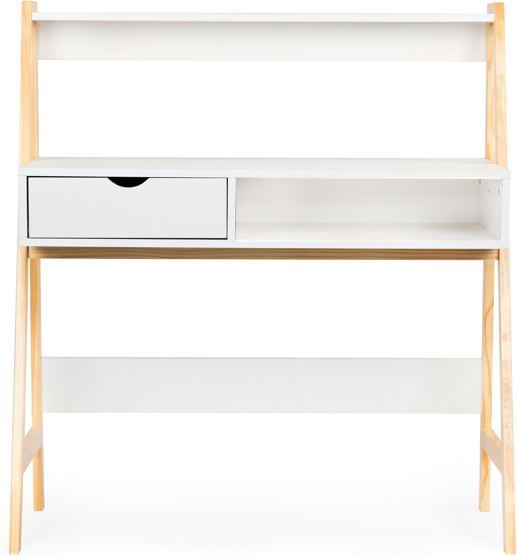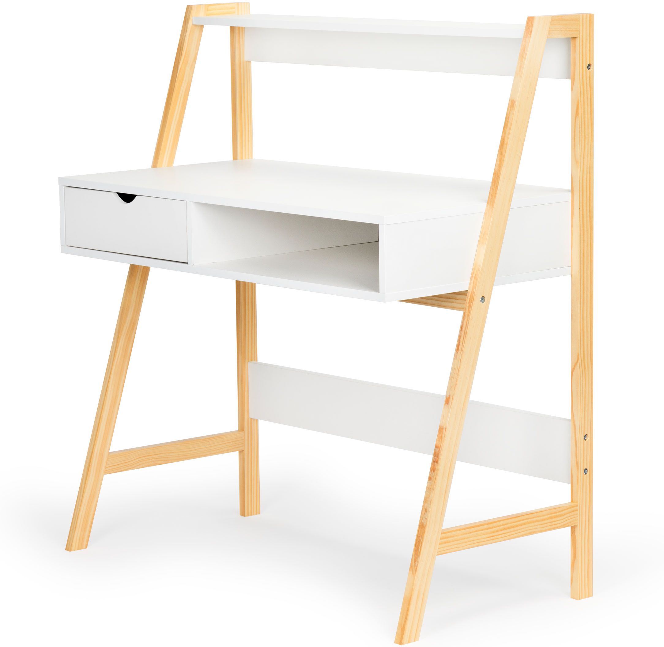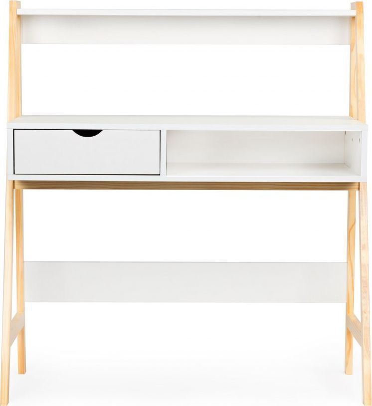 Dzięki połączeniu dużego białego blatu z elementami drewna sosnowego biurko będzie prezentowało się atrakcyjnie we wszystkich wnętrzach. Prosta, nowoczesna forma, staranne wykończenie i funkcjonalność tworzą idealne zestawienie dla najbardziej wymagających użytkowników.