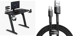 Biurko SENSE7 gamingowe Nomad Cybernetic Czarne 120x60 cm + kabel usb