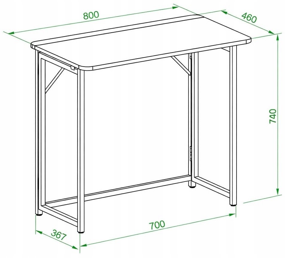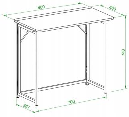 Wymiary biurka wynoszą 800 mm szerokości, 460 mm głębokości oraz 740 mm wysokości, co czyni je idealnym rozwiązaniem do biur oraz domów, gdzie przestrzeń jest na wagę złota.