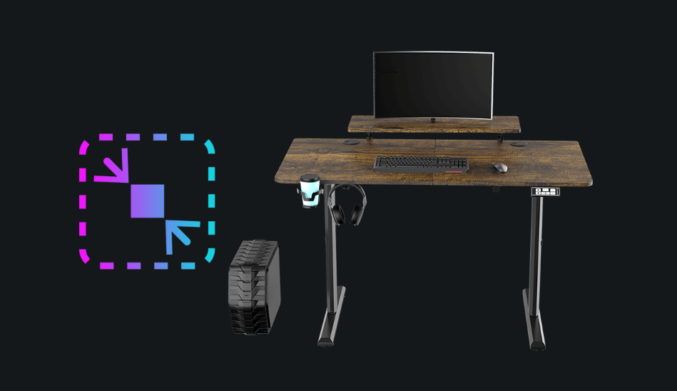 HIGHLANDER świetnie sprawdza się z zestawem komputerowym bazującym na jednym lub dwóch monitorach lub z laptopem. Doskonale posłuży również jako stanowisko do gry na konsolach video. Kompaktowy rozmiar pulpitu powoduje, że biurko zmieści się nawet w bardzo małych pomieszczeniach. Mimo niewielkich gabarytów może pomieścić dużo akcesoriów i urządzeń zewnętrznych wykorzystywanych do gier lub pracy.