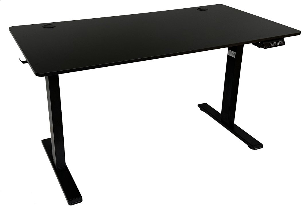 Biurko posiada dwa uchwyty na słuchawki, które mogą również służyć do zawieszenia torby lub plecaka, co sprzyja utrzymaniu porządku w miejscu pracy. Panel sterujący umieszczony jest w dogodnym miejscu, co umożliwia łatwą regulację wysokości bez zakłócania pracy.