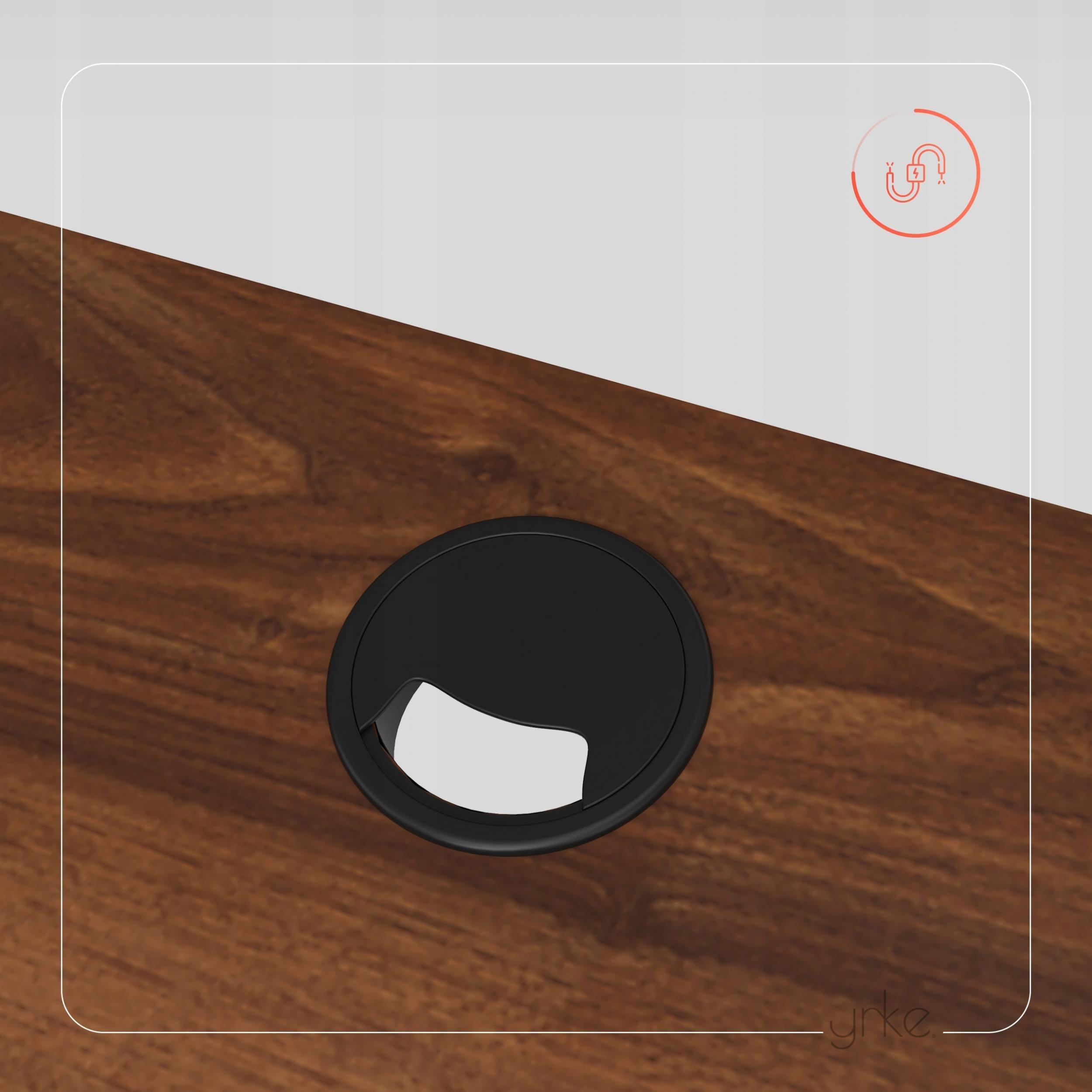 Na wyposażeniu biurka IRON znajduje się także przelotka na przewody.
