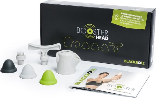 BLACKROLL® BOOSTER HEAD to nowoczesny zestaw składający się z sześciu nakładek, które umożliwiają przeprowadzanie różnorodnych masaży wibracyjnych. Dzięki swojej unikalnej konstrukcji, produkt ten stanowi doskonałe rozwiązanie dla osób zmagających się z napięciami mięśniowymi oraz punktami bólowymi. Wibracje generowane przez BOOSTER HEAD w połączeniu z różnorodnymi nakładkami umożliwiają skuteczne leczenie oraz relaksację mięśni.