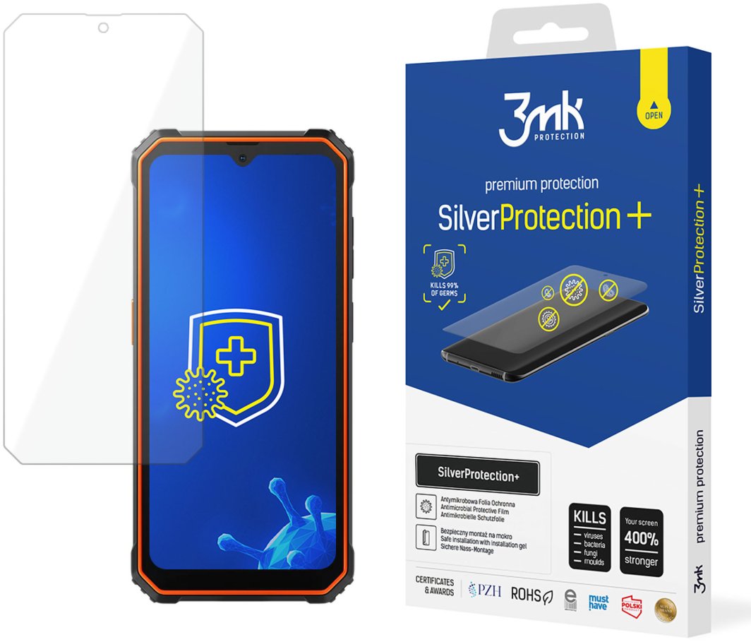 Folia ochronna wzmacnia wyświetlacz o 400%, a powłoka antymikrobowa zabija 99% bakterii, wirusów, grzybów i pleśni.