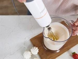 Kielich o pojemności 500ml pozwoli sprawnie odmierzać i przechowywać składniki. Umożliwia wygodne przygotowanie owocowych koktajli, zup, kremów, wszelkich ciast i mas np. na naleśniki lub biszkopt oraz ubijanie białek i śmietany, bez obaw o zachlapanie kuchni czy ubrań.