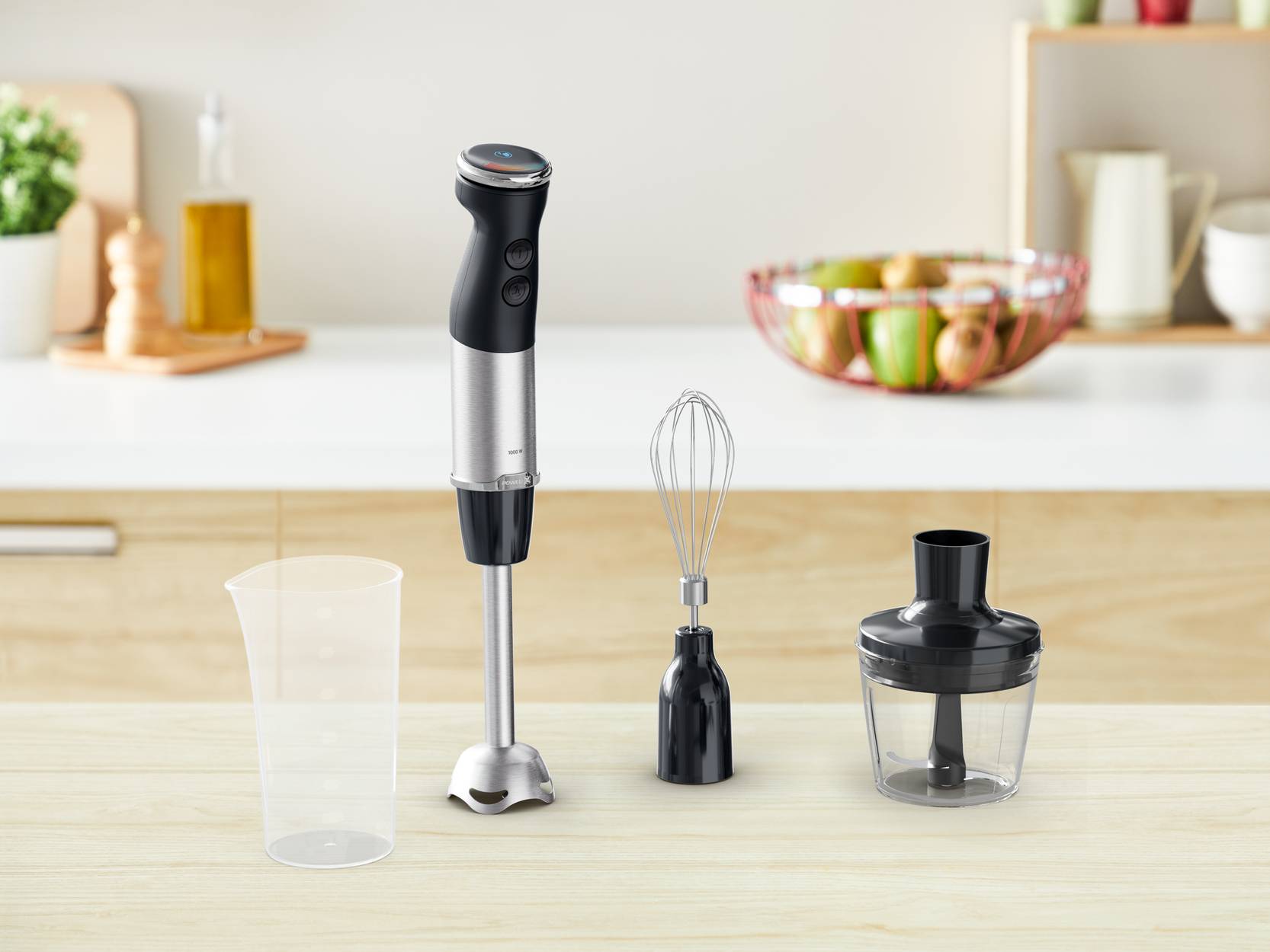 Siekaj i miel za pomocą kompaktowego rozdrabniacza, ubijaj białka i majonez z użyciem trzepaczki oraz używaj pojemnego kielicha do łatwiejszego blendowania.