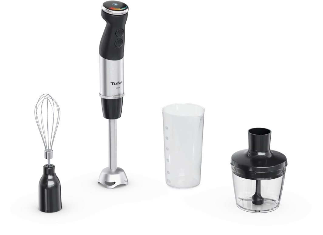 Blender ręczny Quickchef+ marki Tefal to doskonałe działanie i pełna kontrola! Wyjątkowa Technologia Powelix Blades zapewnia do 30% szybsze* blendowanie oraz niewiarygodnie gładkie rezultaty — nawet w przypadku najtwardszych składników. Ergonomiczny uchwyt z miękką rączką, solidna metalowa obudowa, osłona przeciwrozpryskowa i wielu innych funkcji podnoszą komfort codziennego użytkowania. W porównaniu z technologią Tefal opartą na 2 ostrzach.