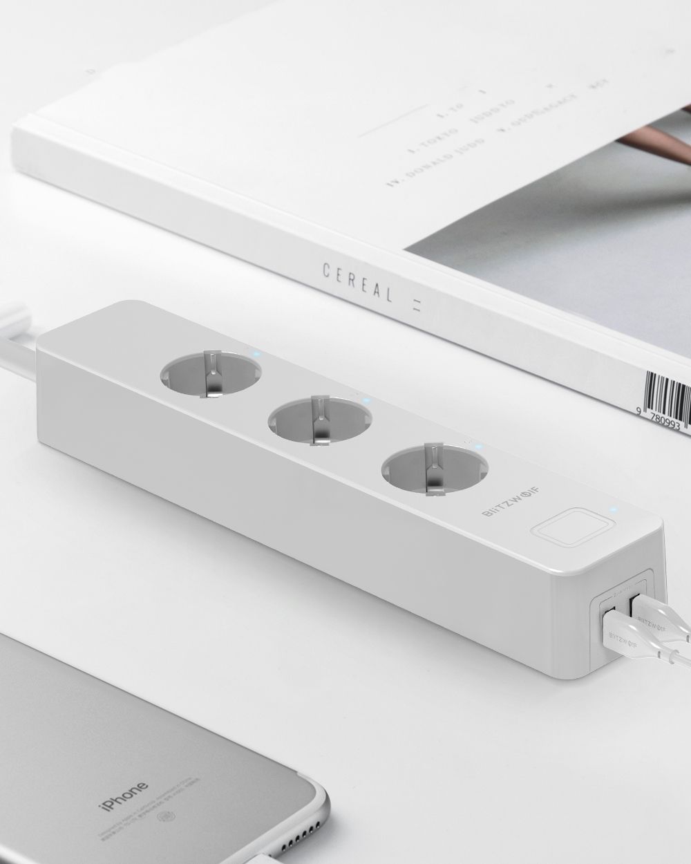 Blitzwolf Inteligentna listwa zasilająca Blitzwolf BW-SHP9, 3 gniazda + 2x USB, 15A, 3300W