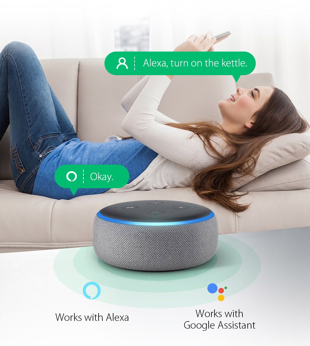 Kompatybilność z Amazon Alexa i Google Assistant pozwala na łatwe sterowanie głosem. Od teraz będziesz mógł włączać swoje urządzenia nawet, wtedy gdy Twoje dłonie są zajęte.