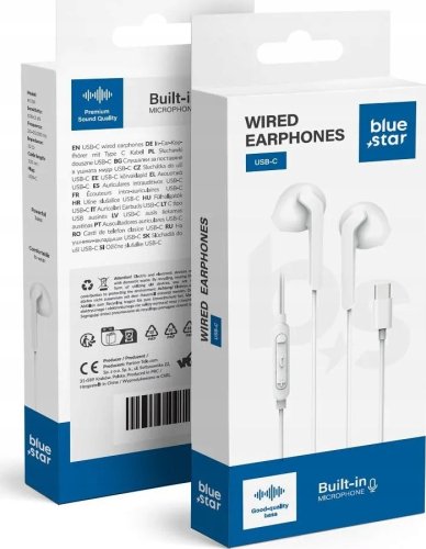 BLUE STAR słuchawki przewodowe Typ C z mikrofonem PA-M15C-R 1,2 m białe