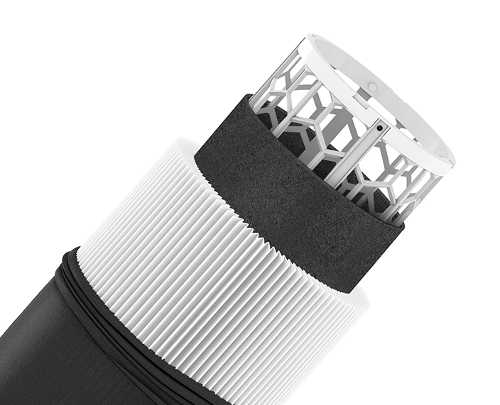 Filtr kombinowany będący połączeniem filtra Particle z filtrem Carbon usuwa z domowego powietrza irytujące zapachy, substancje chemiczne i gazy, a także 99,97% unoszących się w powietrzu cząstek, takich jak pyłki, kurz, wirusy i inne dzięki technologii filtracji HEPASilent™ Blueair.