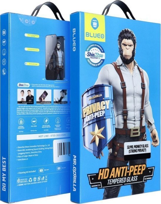 Blueo Szkło Hartowane 5D Mr. Monkey Glass - Apple iPhone 16 Pro Max czarny (Strong Privacy)