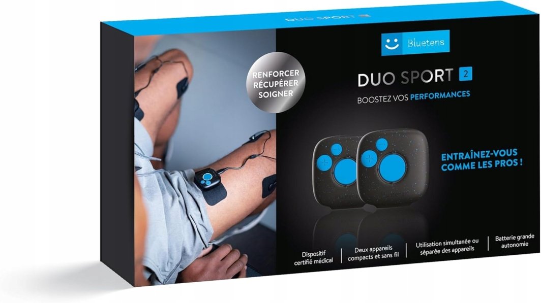 Bluetens Duo Sport 2 to nowoczesne urządzenie do elektrostymulacji, które łączy w sobie funkcje łagodzenia bólu, masażu oraz wzmacniania mięśni. Zaprojektowane z myślą o sportowcach oraz osobach prowadzących aktywny tryb życia, to innowacyjne narzędzie wspiera proces regeneracji, przynosi ulgę w bólu oraz relaksuje mięśnie, co czyni je doskonałym towarzyszem w codziennych treningach i rehabilitacji.