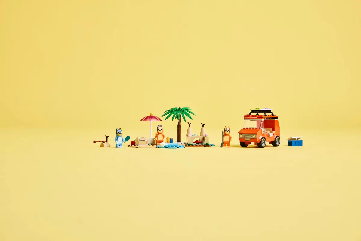 Modułowy domek z wieloma pomieszczeniami zawiera cztery minifigurki — Blue, Bingo, Czili (mamę Blue) i Bandżiego (tatę Blue) — oraz akcesoria, w tym tęczową pelerynę, różdżkę i szkła powiększające. Każde pomieszczenie można odczepić, co daje wiele możliwości zabawy. W pokoju zabaw znajdują się domek dla lalek, pianino i stoisko z jedzeniem do odgrywania ról. W kuchni jest lodówka, piekarnik, kuchenka, stół i krzesła. Na piętrze znajduje się sypialnia mamy i taty oraz łazienka. Sypialnia na poddaszu Blue i Bingo ma dywan, lampę i figurkę Skrzekoptaka. Obok znajduje się tron królowej, czajnik, filiżanka i żaba. W ogrodzie jest duże drzewo, są hot dog, pizza, kran z wodą, krasnal Jeremi i balon do podrzucania.