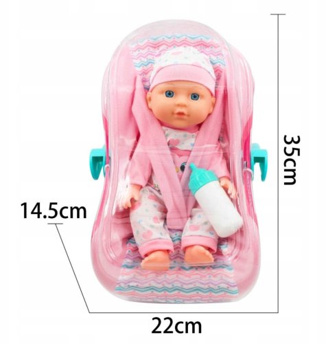 Bobas w nosidełku G215639 86864 jest zapakowany w estetyczne opakowanie o wymiarach 35 cm x 22 cm x 14,5 cm, co ułatwia przechowywanie i transport. Jego atrakcyjny design przyciąga uwagę i sprawia, że jest to produkt, który z pewnością przypadnie do gustu każdej małej dziewczynce.