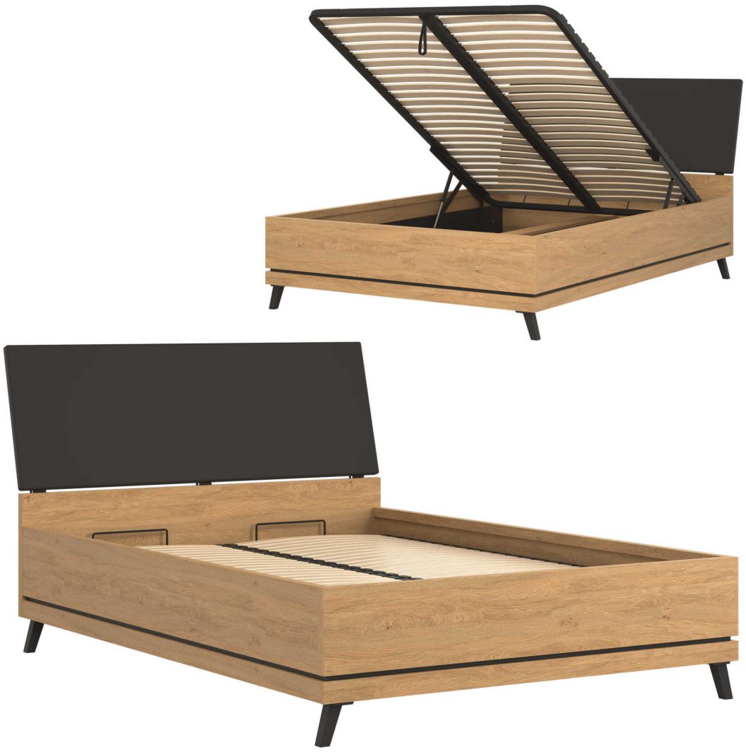 BogFran Łóżko z pojemnikiem 140x200 dwuosobowe dąb kamienny czarny ATE AT15
