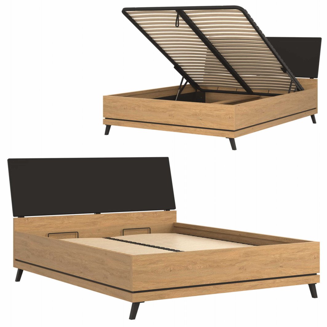 BogFran Łóżko z pojemnikiem 160x200 dwuosobowe dąb kamienny czarny ATE AT15