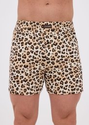 Luźne bokserki męskie w panterkowy print z wysokiej jakości bawełny. W pasie szeroka, elastyczna gumka, rozporek zapinany na guzik. Skład: 100% bawełna