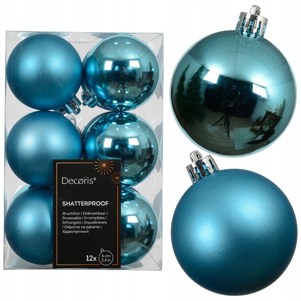 Bombki choinkowe zestaw 12 szt. niebieskie 6 cm błyszczące i matowe