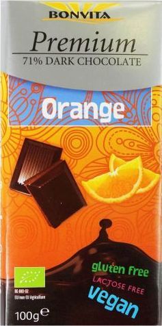 BONVITA Czekolada premium gorzka 71% z kawałkami pomarańczy bez laktozy, bezglutenowa (na napoju ryżowym) BIO 100 g - Bonvita