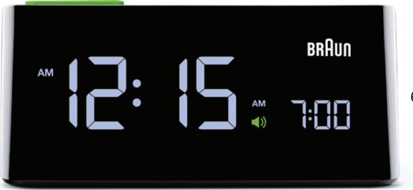 Braun BNC016. Model: Cyfrowy budzik, Kolor produktu: Czarny, Format czasu: 12/24h. Typ wyświetlacza: LCD. Szerokość produktu: 140 mm, Wysokość produktu: 60 mm, Głębokość produktu: 150 mm