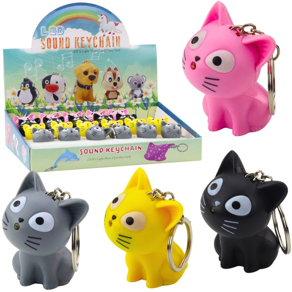 Brelok Do Kluczy Plecaka Kotek Latarka LED Dźwięki Mix Kolor