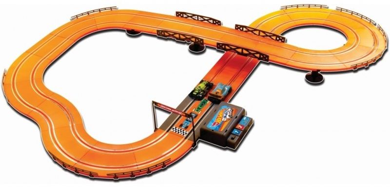 Tor wykonany w skali 1:43, długość trasy po rozłożeniu 380cm. W zestawie znajduje się panel startowy, 2 kontrolery z funkcją doładowania, 2 autka oraz zestaw torów, ramp i prowadnic, całość na licencji Hot Wheels nadającemu tej zabawce niepowtarzalny charakter.