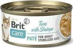 BRIT CARE CAT STERILIZED TUNA PATÉ WITH SHRIMPS Karma uzupełniająca, superpremium, hypoallergiczna, mokra, dla dorosłych sterylizowanych kotów, z tuńczykiem i krewetkami. Nie zawiera soi, cukru, glutenu, GMO, barwników, konserwantów i środków aromatyzujących.