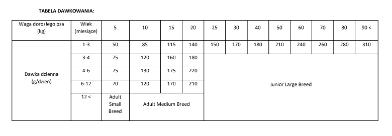 zależności od aktywności i wieku Twojego psa. Należy zapewnić psu stały dostęp do miski świeżej wody. Przechowywać w