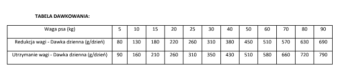 zależności od aktywności i wieku Twojego psa. Należy zapewnić psu stały dostęp do miski świeżej wody. Przechowywać w