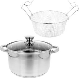 Garnek wielofunkcyjny wyposażony w ażurowy kosz z uchwytem, który pozwala na odsączanie zawartości z wody lub tłuszczu, dzięki temu eliminuje konieczność używania durszlaka czy łyżki cedzakowej. Idealny do smażenia frytek oraz gotowania makaronu, ziemniaków, pierogów czy warzyw.