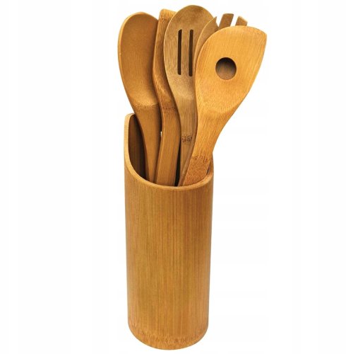 Brunbeste Przybory kuchenne w stojaku drewniane zestaw przyborów 6-ele BRUNBESTE BB-1573