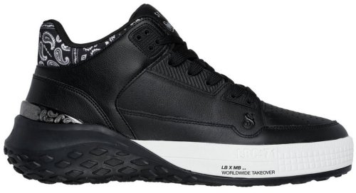 Skechers Snoop Dogg: Sizzle - Buckets OG - Ten nowoczesny styl mid-top jest tak wyjątkowy, jak jego twórca D-O-Double G. Gładka i perforowana cholewka ze skóry premium z detalem kołnierza w stylu paisley, metalicznym wykończeniem pięty i bardzo miękką wkładką Skechers Air-Cooled Memory Foam™.