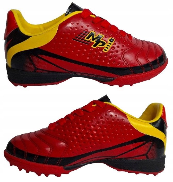 Te sportowe buty piłkarskie nie tylko są funkcjonalne, ale również prezentują się niezwykle stylowo. Czerwono-żółto-czarny kolor sprawia, że wyróżniają się na boisku, dodając pewności siebie młodym piłkarzom.