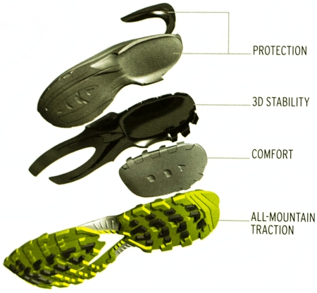 3D Advanced Chassis™ to specjalna platforma zamontowana pomiędzy podeszwą zewnętrzną a środkową, której celem jest ochrona przed oddziaływaniem nierówności podłoża. System ten dodatkowo gwarantuje niezbędną podczas chodzenia przyczepność oraz ergonomiczne ruchy. Absorbując wstrząsy zabezpiecza staw skokowy w okolicy pięty oraz kostkę przed skręceniem.